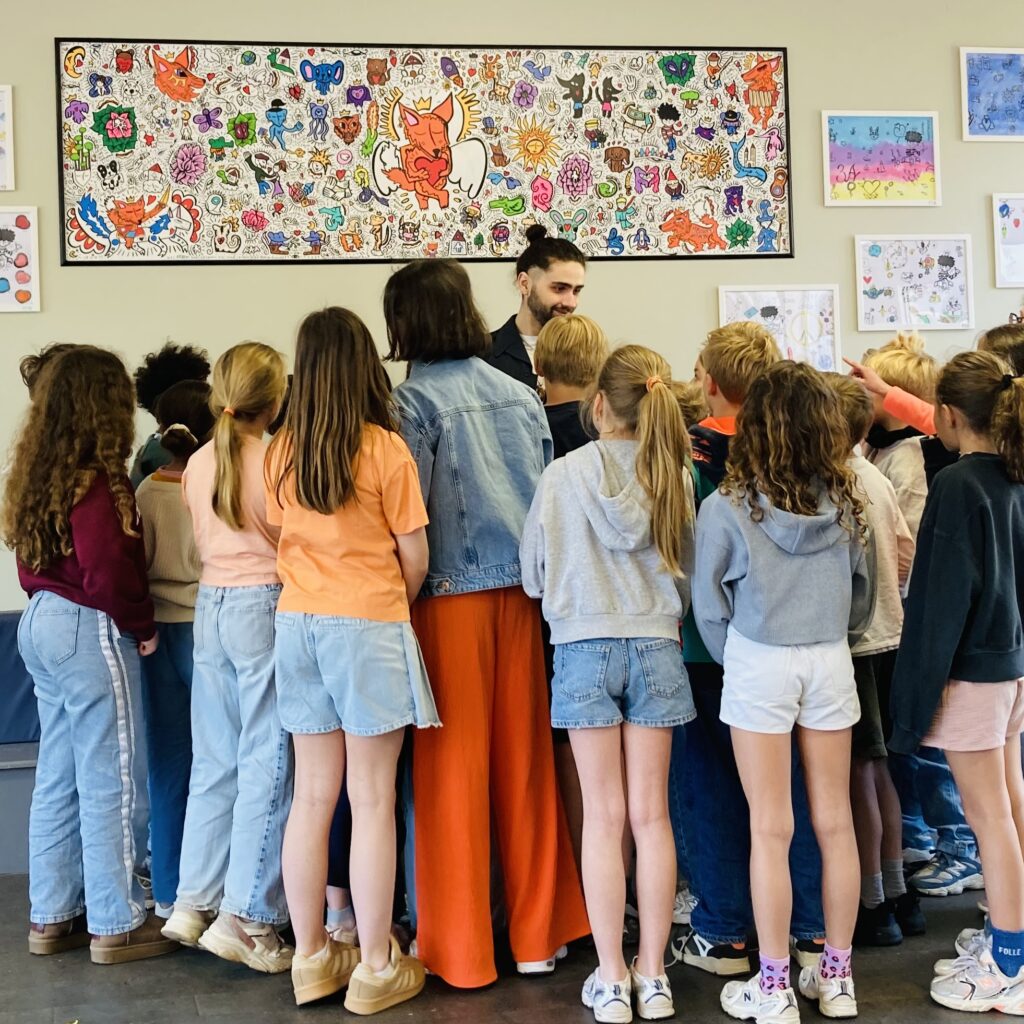 Au cœur de l’événement : l’inauguration de la fresque de Valentin, une œuvre vive et joyeuse qui rejoint désormais le quotidien de l’école.