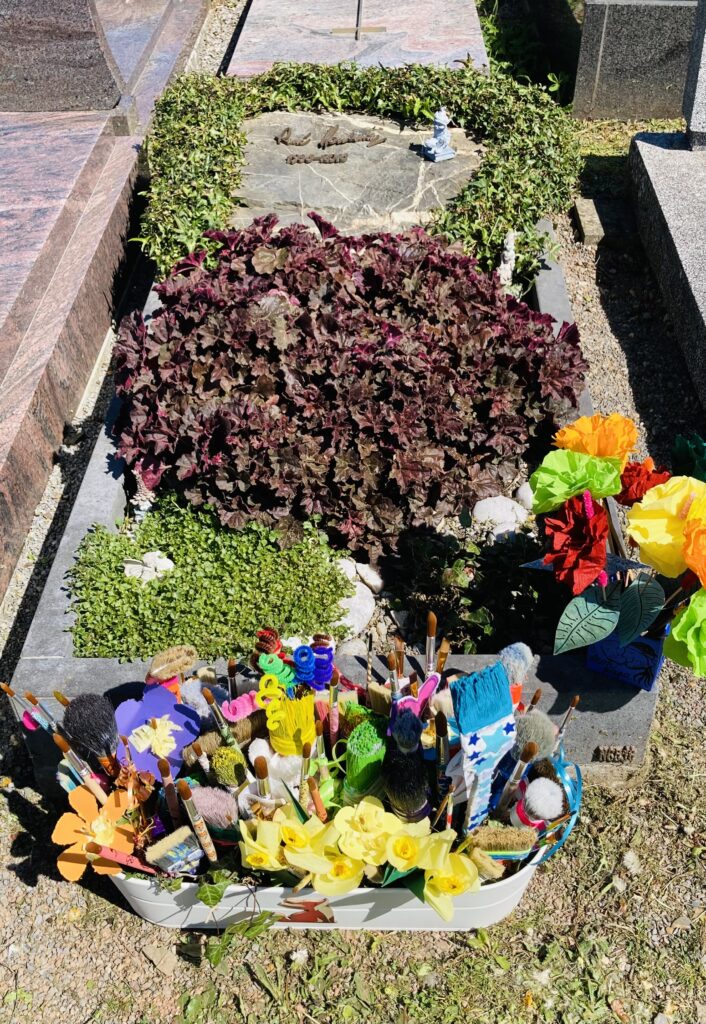 Et puis, dans un geste simple et chargé de sens, nous avons déposé une corbeille de pinceaux sur sa tombe, comme une manière de dire que la création continue, que son souffle circule encore.