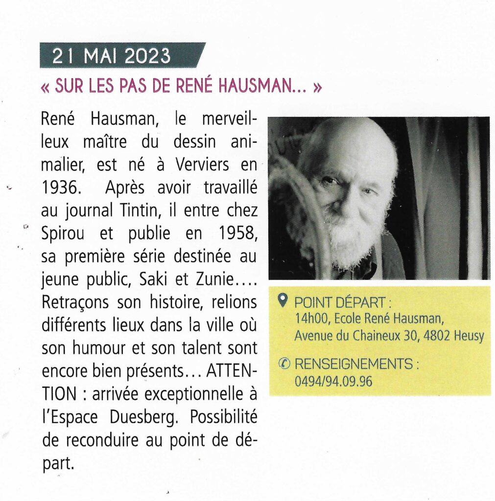 En compagnie de Madame Nicole Brayeur, Guide Touristique de l’Arrondissement de Verviers, nous retracerons un peu l’histoire de René en découvrant différents lieux qui ont animés sa vie tant personnelle qu’artistique!